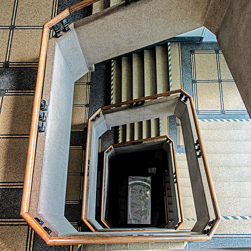 Since the 12th century, the site occupied by the City of Brussels PCSW has housed and cared for the most disadvantaged individuals. First, there was the Saint-Pierre leprosarium, which later became a convent and finally a hospital in 1783. Today, the PCSW is housed in a complex built between 1929 and 1935 by Jean-Baptiste Dewin, an architect who was instrumental in spreading the Art Deco style in Brussels between the wars. Partially demolished in 1992, it remains an important vestige of the original building, which has since been listed. The building’s marked functionalism is discreetly blended with Art Deco elements in the ironwork and stairwells. Few would suspect that behind its facades lie real treasures, paintings, sculptures and even pieces of silverware, all testimonies to the history of the city of Brussels and piously preserved here. (CL 28/01/2021)