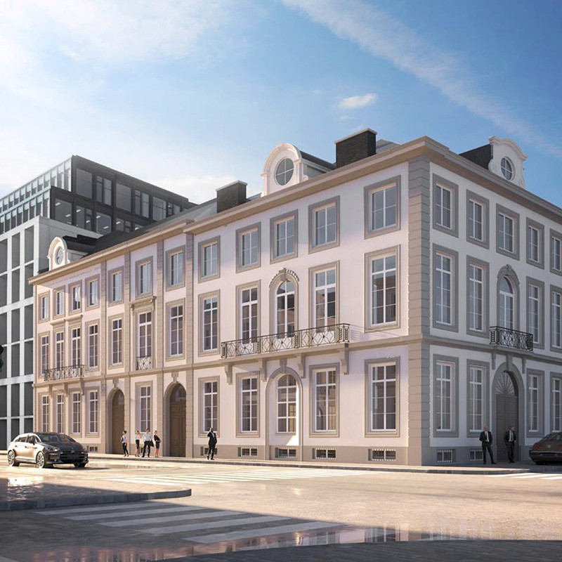 Facing the Parc de Bruxelles, in front of the Royal Palace of Brussels, and bordered by the Rue de la Loi and the Rue Ducale, the original plans for this corner building were drawn up in 1778 by B. Guimard and became reality three years later, after its purchase by Josse Massion, a distinguished architect and master builder. In the course of the 19th century, the building, first in the hands of a Duke of Windischgrätz, then of the Prince of Orange, and finally of the Blondel and Hendecourt families, which belonged to the upper classes, became the property of the Belgian State at the turn of the century, after several renovations. The main entrance of the house, which still contains details from the late 18th century, was moved to its present site after 1815, and the U-shaped form and size of the building was completed in 1870. The Belgian Ministry of Finance was also housed in this building. The Hungarian state bought the building in 2021. The complete renovation of the building was completed and opened as the House of Hungary in the summer of 2024.