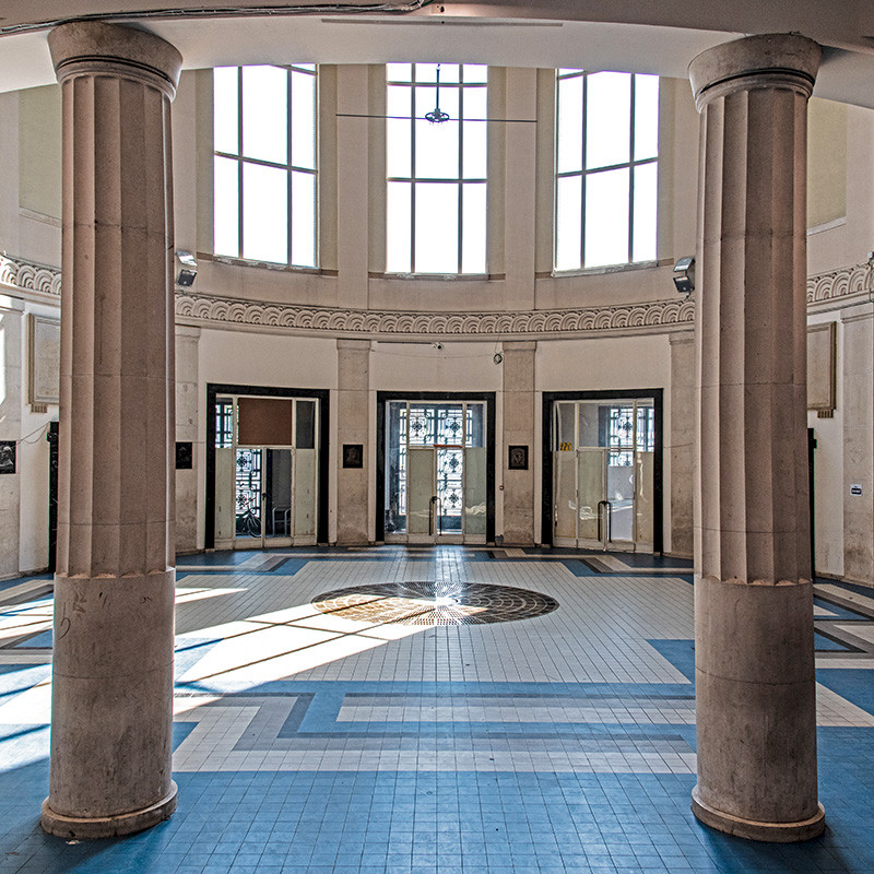 Vocational education was booming, and there were plans to build an Institut des Arts et Métiers as early as 1913. The war delayed the project, which finally took shape in 1926 when engineer and architect Eugène François was commissioned to draw up plans for a vast complex with the help of architect Alexis Dumont. The complex was on a plot of land made available after the demolition of the municipal abattoir. Designed in a monumental Art Deco style, the original facade featured a marked asymmetry due to the presence of a powerful rotunda on the right-hand side. It is preceded by a ring-shaped entrance vestibule with three doors featuring geometrically-designed wrought-iron grilles. Two pyramid-topped pylons flank this rotunda, to which seven bays have been added. The first two, occupied by the concierge and the library, precede a third, larger one with an additional entrance. The last four are identical and punctuated by spur-like buttresses that contribute to the building’s marked verticality. This is counterbalanced by the horizontality of the alternating registers of bluestone, yellow brick and bay windows. The sculptures, created by Marcel Rau and Jean Canneel, complete the ensemble. It features ten octagonal medallions representing the emblems of the Arts et Métiers over the third floor, four seated statues 2.40 m high topping the buttresses of the rotunda, and a gilded bronze effigy of Saint Michael slaying the dragon topping the main entrance. The interior was also carefully decorated in typical Art Deco style. (CL 19/08/2024)