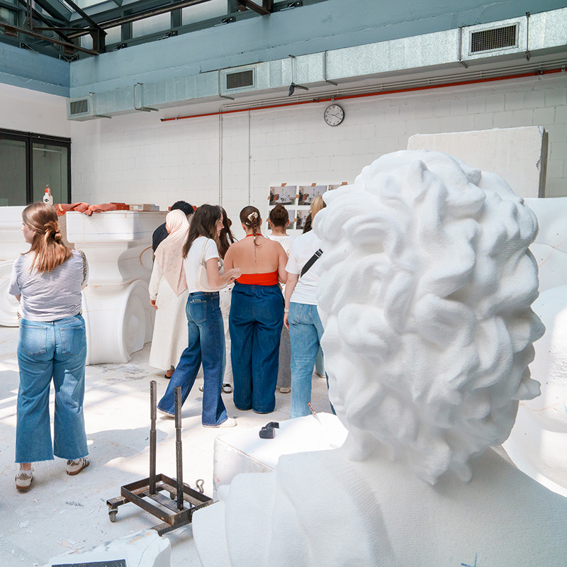 La Monnaie, one of Europe's most prestigious opera houses, needed more space and, over the years, the institution has had the opportunity to install its workshops in various ancillary buildings. Today, it is housed in the former Vanderborght store, an emblematic Art Deco building erected between 1932 and 1935 by architects Léon Govaerts and Alexis Van Vaerenbergh. The complex occupies a vast block between Rue de l'Écuyer and Rue du Fossé aux Loups. On this side, the facade features an imposing horizontal volume with a reinforced concrete structure and an abundance of windows. The building comprises seven floors, two of which are stepped back in the upper section, counterbalanced by a slender vertical tower marking one of the entrances. It was on this side that the La Monnaie workshops took up residence, while the part opening onto Rue de l'Écuyer, now independent, currently hosts cultural events. La Monnaie has optimised the premises, fitting out five studios and two large rehearsal rooms. One, named Malibran after the famous singer, has 300 seats and can be used to present small-scale operas and shows. The other, named Fiocco after La Monnaie's first music director, can also host concerts and other events. There is also an impressive editing room, the same size as the stage. It comprises three storeys in the middle of the building, framed by the carpentry, metalwork, sculpture and accessories workshops. Costume designers rule the fifth floor, while the first floor is devoted to painting and tapestry, not far from the two large rooms reserved for educational activities.