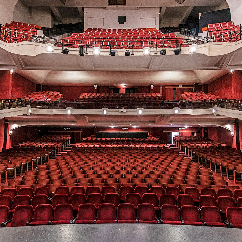 Designed by Franz Hemelsoet, the Théâtre Saint-Michel opened in 1932. While the exterior is in the same Rhenish neo-Romanesque style as all the buildings at Collège Saint-Michel, once you step through the door, you are in for a surprise. The architect created a world of Art Deco style. A monumental staircase takes pride of place in a vast foyer that can seat nearly 700 people. A half-moon staircase leads to a straight flight of stairs, which then divides into two, all adorned by wrought-iron railings. Similarly, the vast hall, one of the largest in the capital, adopts the purest Art Deco style, which is evident in the decor, from the ironwork on the balconies to the mouldings and geometric light fixtures. Thanks to stalls and two upper balconies, all spectators (1,800 could be seated at the time) face the stage, in what is known as the "Wagnerian" style. This art venue was managed by Collège Saint-Michel until 1993. After several private managers, a new volunteer team has been running the theatre since 2024, with financial support from the Compagnie de Jésus and others.