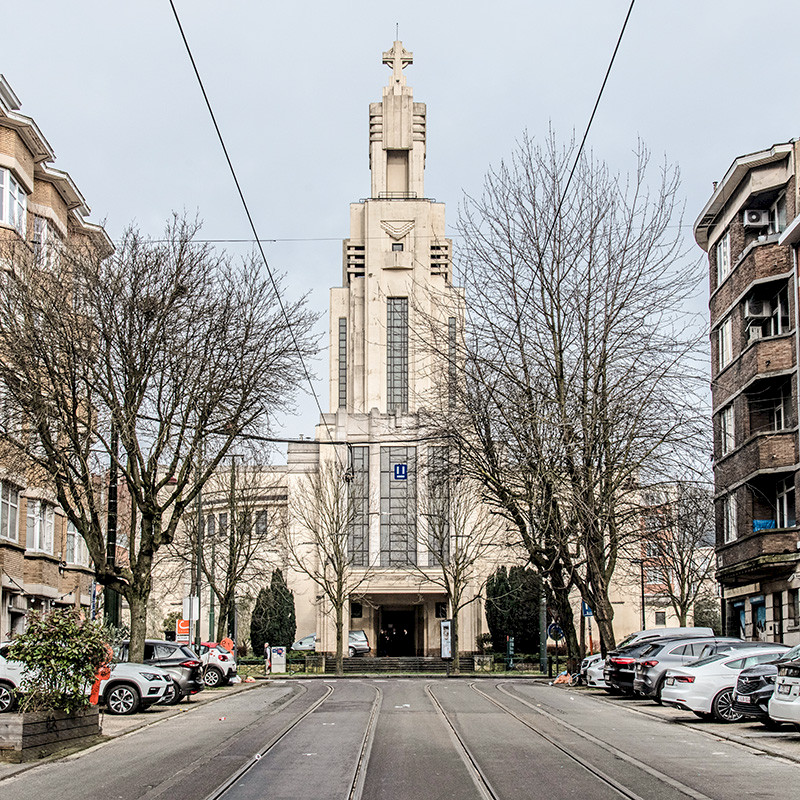 Strategically located on one of the capital’s highest points, Saint-Augustin church boasts a distinctive Art Deco aesthetic. It was completed in 1935. Architects Léon Guiannotte and André Watteyne chose a "pyramidal" structure with a central bell tower and an almost circular plan, so that the church could present a visually attractive angle to each of the eight avenues that converge on the crossroads at its centre. According to surviving plans, the church’s proportions are based on the sacred cubit of the Egyptians. The layout, in the shape of a Greek cross set in a circle, symbolises the mystical sign of the world. Like Saint-Jean-Baptiste in Molenbeek-Saint-Jean and Sainte-Suzanne in Schaerbeek, Saint-Augustin is made of reinforced concrete. The church boasts an admirable collection of stained glass windows designed by Guiannotte himself and created by master stained glass artist Paul Steyaert. The Art Deco aesthetic of the stained glass windows in the tower combines with the traditionalist trend that inspired the design of the other windows. On a sunny day, the building’s immaculate interior is beautifully lit up in shades of mauve, red, yellow and blue. (CL 08/08/1988)