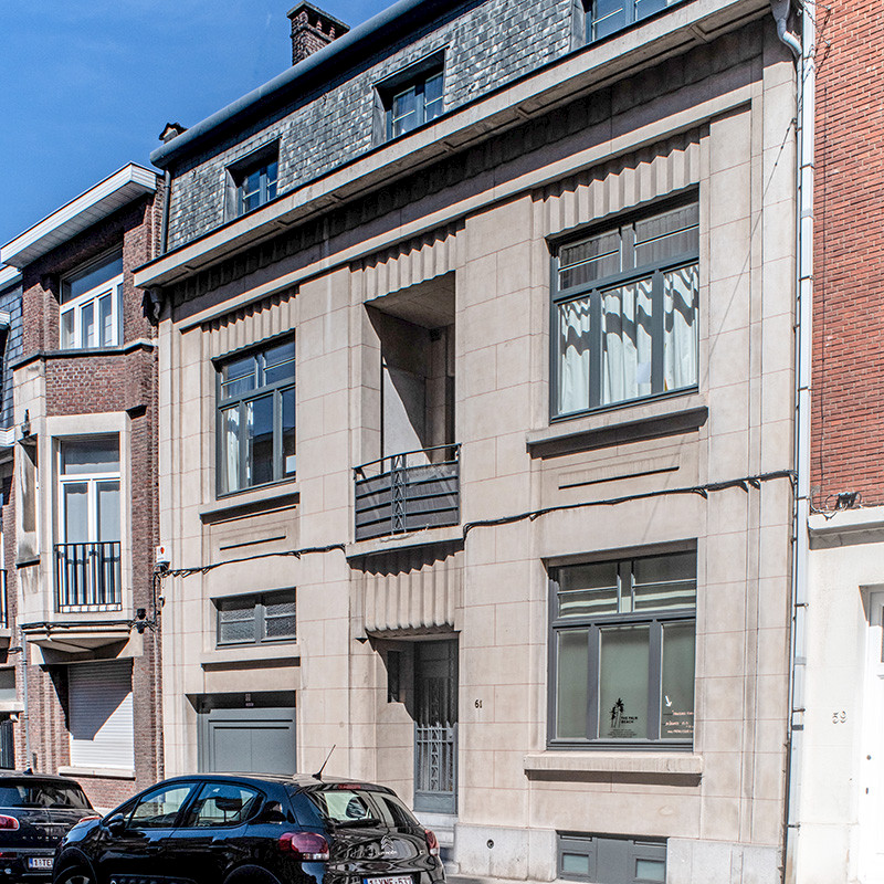 Joseph Diongre designed apartment buildings, housing estates, the Flagey building, the Hôtel Communal in Woluwe-Saint-Lambert and the Saint-Jean-Baptiste church in Molenbeek, as well as numerous villas and private homes, such as the Maison Averbouch on Rue Meyerbeer. Built in 1929, it features a broad, symmetrical Art Deco facade with simple contouring. It is three bays wide, and clad in white imitation stone on a bluestone base. The interior has retained its spacious rooms, including a vast, welcoming hall. Designer parquet floors, different types of marble, fluted mouldings, stained glass windows and a lantern with coloured glass create a coherent Art Deco ensemble. Today, Maison Averbouch combines two functions: a home and an art gallery (The Palm Beach).